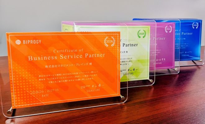 BIPROGY株式会社様より、昨年度に続き「2026年度BusinessServicePartner」の認定をいただきました。